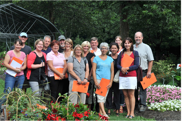 De gauche à droite : Émilie Gabias* (AQCHO), Albert Mondor* (médias), Marie-Pierre Lamy* (Jardin Roger Van den Hende), Pierre Charbonneau* (JVK), Mireille Bourgeon (Ball), Rock Giguère* (Groupex), Chantal Gauthier (JVK), Patricia Gallant* (Jardins de Métis), Manon Lemieux* (Ball), Normand Tellier* (producteur), Mireille Dubuc* (Jardin botanique de Montréal), Claudette Roy (Jardin Roger Van den Hende), Annabel Carignan* (IQDHO), Lise Goudreau* (Norseco), Daniel Cléroux* (Botanix) et Claude Vallée* (ITA- Jardin Daniel A. Séguin) derrière la caméra. *membre votant du comité. Le jardin de démonstration et d’évaluation des nouveautés horticoles du Jardin Daniel A. Séguin est sous la supervision de Mme Annie Lachapelle, chargée de projet du programme Les Exceptionnelles®.