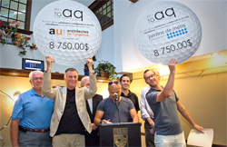 La 27e édition du Tournoi de golf des architectes du Québec (TGAQ), présentée par Kollectif.net, en partenariat avec ARD, la Financière des professionnels, Fransyl, Groupe conseil SD, Industrielle Alliance, Jura, Morency avocats, Roxul, Soprema, v2com.biz et Walltite Eco/BASF, s’est tenue le jeudi 11 août dernier au club de golf La Madeleine. Un montant total de 17 500 $ a été distribué entre les Architectes de l'urgence du Canada et le Festival international de jardins des Jardins de Métis. Depuis 2010, c'est donc un total de 30 000 $ qui a été remis directement à l'industrie du design et de l'architecture au Québec. Alexander Reford, directeur des Jardins de Métis et du Festival international de jardins, s’est dit très heureux que « le comité organisateur ait choisi de soutenir les efforts du Festival, déployés depuis maintenant 12 ans, pour mettre en valeur la créativité des architectes de paysage au travers quelques quatre-vingt-dix jardins conceptuels réalisés par des créateurs d’une quinzaine de pays. Il tient à remercier particulièrement Morency Société d’avocats pour leur don de 2 500 $ et le TGAQ qui lui a remis une somme de 6 250 $ ». La 12e édition du Festival international de jardins, qui met à l’honneur la ville de New York autour du thème des « Jardins secrets », est présentée jusqu’au 2 octobre prochain et propose 23 installations in situ. « Avec un budget de plus de 70 000 $, le TGAQ est parmi l'un des tournois de golf les mieux nantis au Québec. Cependant, bien qu'il soit toujours agréable de recevoir, c'est encore mieux de donner, surtout dans un contexte où les paliers de gouvernements se font de plus en plus frileux à encourager des initiatives humanitaires et culturelles dans le domaine du design et de l'architecture », souligne Martin Houle, architecte OAQ, Directeur-fondateur de Kollectif et Organisateur-principal du TGAQ. Le Festival international de jardins est présenté grâce au soutien financier de nombreux partenaires publics et privés : Conseil des Arts du Canada, Patrimoine canadien, Emplois d’été Canada, Conseil des arts et des lettres du Québec, Tourisme Québec, Emploi-Québec, SAQ, Atlantis, La Société Canadienne de Sel Limitée, Pépinière Charlevoix, Premier Horticulture, Vermont Quarries Corporation, Miellerie Tête en Fleurs et Ferme d'élevage Petite Campagne. Depuis 1999, Hydro-Québec est un partenaire majeur des Jardins de Métis et de ses initiatives environnementales et présente le jardin Le Bon Arbre au Bon Endroit de NIPpaysage. Les Jardins de Métis/Reford Gardens, situés sur la rive sud du fleuve Saint-Laurent à l’embouchure de la rivière Mitis dans la péninsule gaspésienne, ont été désignés par le magazine National Geographic Traveler comme étant l’une des « 20 meilleures destinations 2011 ». Site historique national, les Jardins de Métis figurent en tête des « grands jardins d’Amérique du Nord ». Créés par Elsie Reford sur une période de 30 ans, ils sont un témoignage vivant de sa passion pour le jardinage et pour les plantes. Veuillez consulter le site Internet des Jardins de Métis au www.jardinsdemetis.com pour obtenir plus d’informations. Voir l'album-photo de l'évènement.