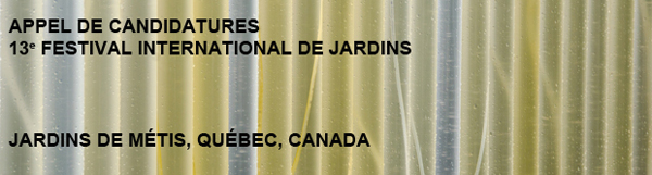 Le Festival international de jardins, présenté aux Jardins de Métis dans la région de la Gaspésie au Québec (Canada), prépare sa 13e édition et lance un appel de candidatures international afin de sélectionner les concepteurs qui réaliseront les nouveaux jardins éphémères présentés du 22 juin au 7 octobre 2012. Cet appel de candidatures est ouvert à tous les architectes paysagistes, architectes, designers et artistes, du Canada et de l’étranger. La date limite de dépôt des candidatures est le vendredi 11 novembre 2011, 17 heures HNE. La 13e édition du Festival mettra à l’honneur la ville de Londres en Angleterre. Aucune thématique n’est imposée aux candidats qui sont invités à soumettre des projets qui feront vivre aux visiteurs des expériences mémorables. Pour connaître toutes les modalités de cet appel de candidatures, les personnes intéressées sont priées de consulter le site internet du Festival : www.festivalinternationaldejardins.ca.
