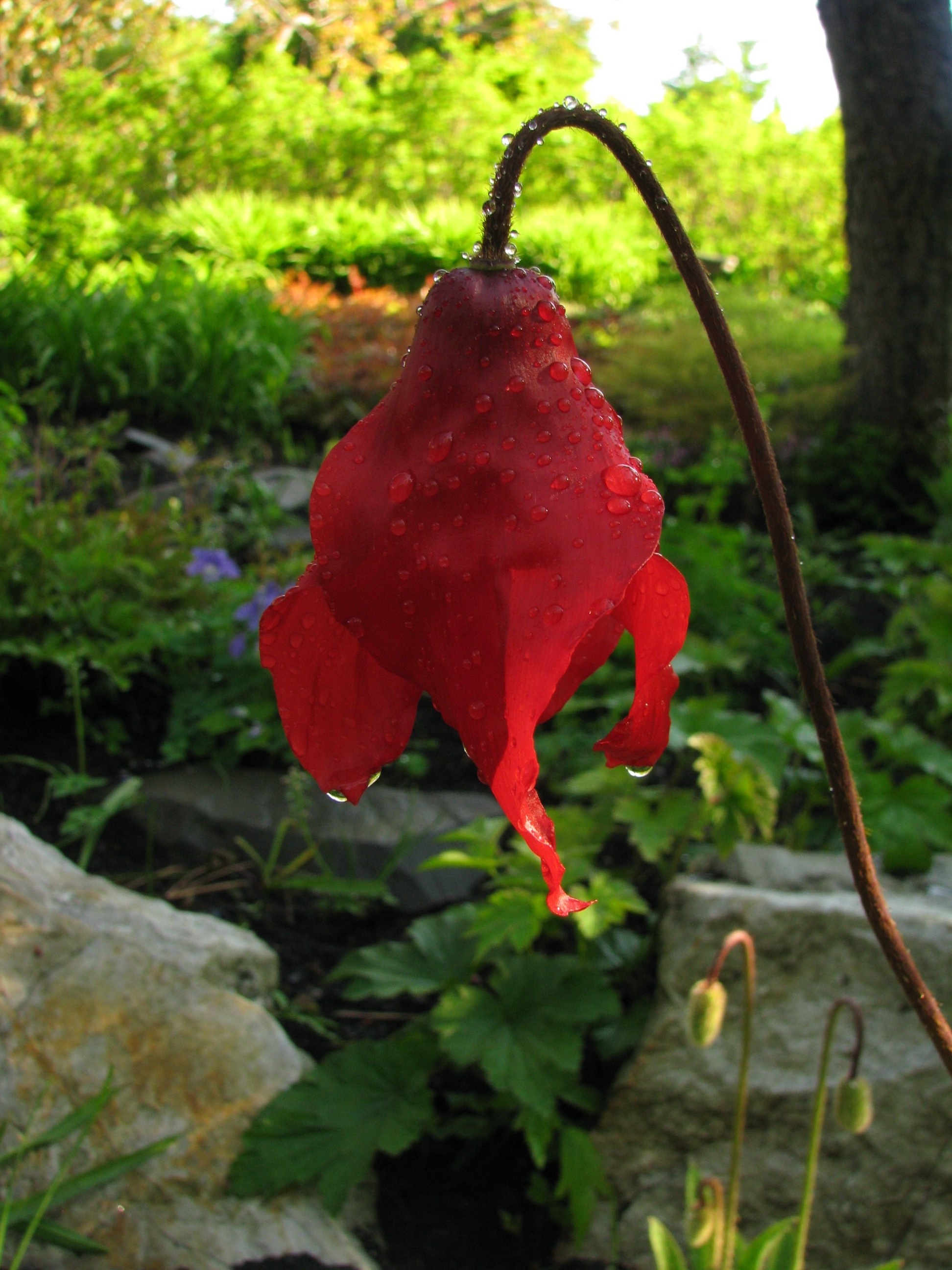 Le Meconopsis punicea est une plante originaire de l’Himalaya extrêmement difficile de culture. Elle est monocarpique, c'est-à-dire qu’après la floraison elle meurt car son cycle de vie est terminé.C’est un spécimen très rare qui nous a été offert par un amateur passionné, M. Bill Terry, de Vancouver. Après dix années de travail, d’essais et d’erreurs et surtout de patience, il a réussi à faire germer les semences de cette précieuse plante. Il est venu lui-même nous offrir ce magnifique cadeau.M. Terry a récemment publié un livre sur le genre Meconopsis.Venez le voir aux Jardins de Métis, dans le jardin des alpines, c’est une occasion tout à fait unique de voir un tel spécimen. La floraison devrait s'étirer jusqu'au 28 juin.